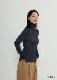 ラメ糸がMIXされた糸を使用したベーシックなタートルニット。アシンメトリーにリブを配置することで部分的にシアー感が出るので1枚着としてもレイヤードとしても、さりげなくオシャレにしてくれる1着です。冬時期でもチュールの代わりにインナーとしてカラーを差すのもオススメ。
